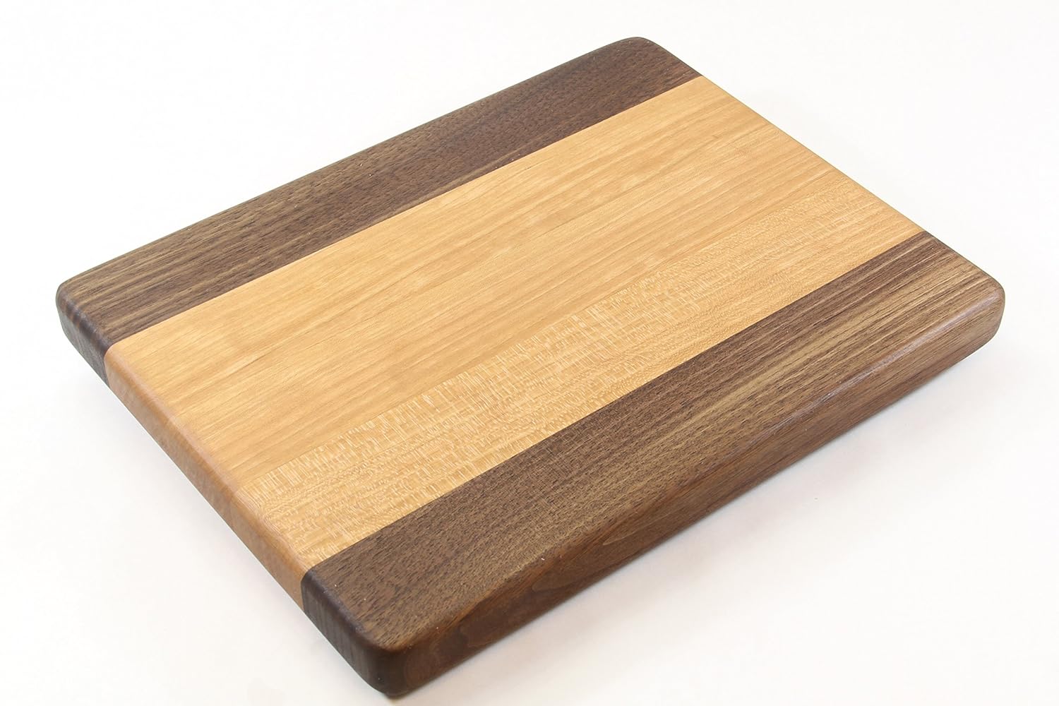Handcrafted Wood Cutting Board - Edge Grain -Walnut and Cherry wood. No slip bottom. Great wedding gift! Chefs/cooks will love this! is best for youThis stunning piece of functional art includes beautifully handcrafted Walnut and Cherry woods. This cutting board is the natural color of the wood - no stains or dyes are used. Therefore the beautiful grains can be seen and the board is 100% food safe. The board comes with non-slip rubber feet with stainless steel washers and screws which will stay securely fastened and will not rust. These feet also allow for proper air flow around the board to prevent any warping. This cutting board measures: 12' x 9' and is 1' thick (all measurements are approximate) Perfect size for the top of a bar or small area. All cutting boards are pre-seasoned with food grade mineral oil and finished with a mineral oil - beeswax combo. Therefore ready to use when you receive it. All boards come with a care sheet and a 2oz bottle of mineral oil to start you off. Every kitchen needs a cutting board, doesn't yours deserve a beautiful, functional piece of kitchen art which can be left out and displayed! *NOTE* Although all boards will be constructed with the exact stated woods, the wood grain and colors may vary throughout, due to the uniqueness of all natural woods.