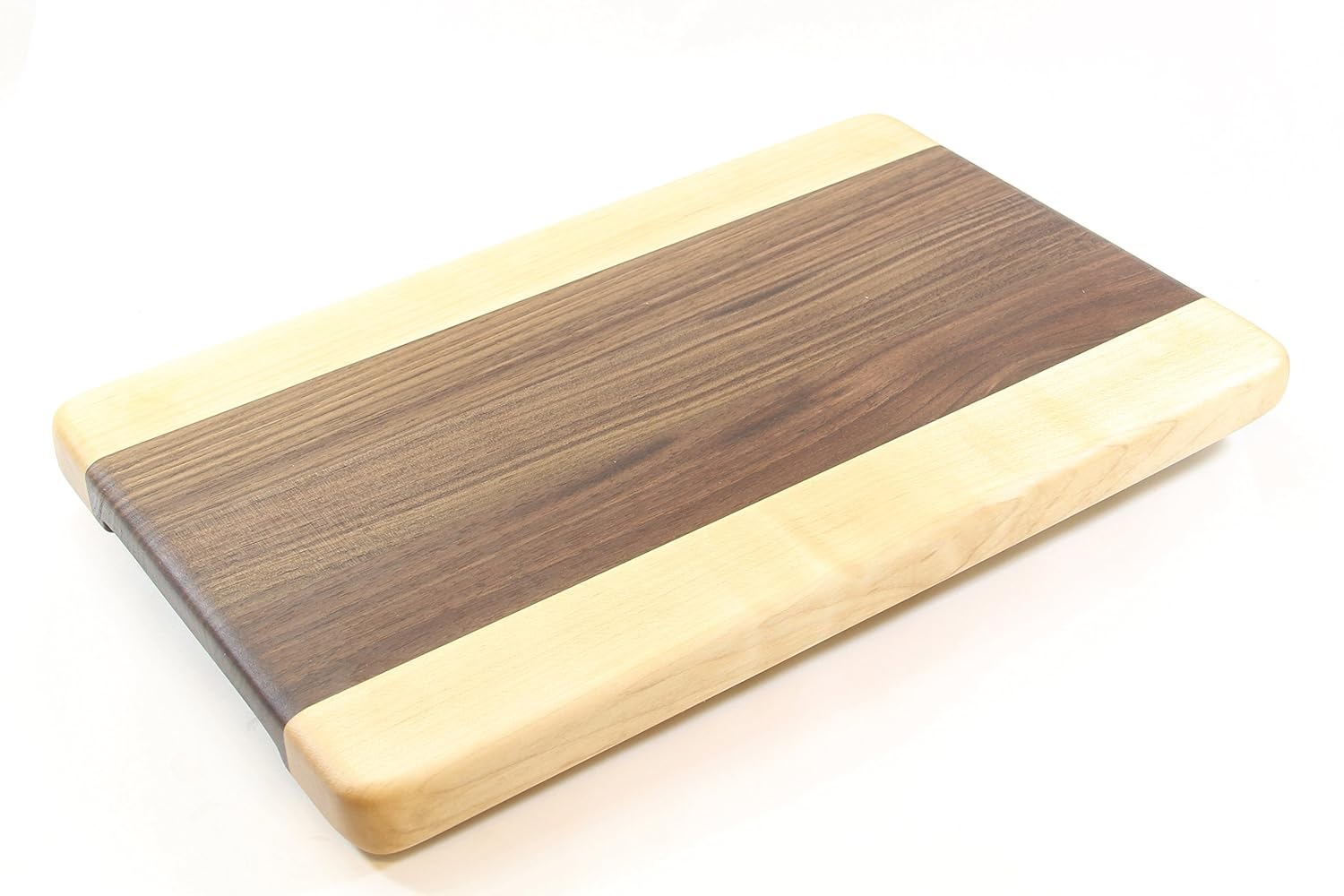 Handcrafted Wood Cutting Board - Edge Grain - Walnut and Maple wood. No slip bottom & easy grips. Chefs/cooks will love this!! is best for youThis stunning piece of functional art includes beautifully handcrafted Walnut and Maple woods. This cutting board is the natural color of the wood - no stains or dyes are used. Therefore the beautiful grains can be seen and the board is 100% food safe. The board comes with non-slip rubber feet with stainless steel washers and screws which will stay securely fastened and will not rust. These feet also allow for proper air flow around the board to prevent any warping. Each board comes with finger grooves on the side which are big enough for all size hands. This helps picking up and moving the board around as necessary. This cutting board measures: 15' x 9.25' and is 1' thick (all measurements are approximate) All cutting boards are pre-seasoned with food grade mineral oil and finished with a mineral oil - beeswax combo. Therefore ready to use when you receive it. All boards come with a care sheet and a 2oz bottle of mineral oil to start you off. Every kitchen needs a cutting board, doesn't yours deserve a beautiful, functional piece of kitchen art which can be left out and displayed! *NOTE* Although all boards will be constructed with the exact stated woods, the wood grain and colors may vary throughout, due to the uniqueness of all natural woods.