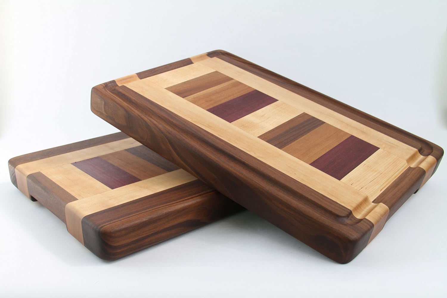 Handcrafted Wood Cutting Board - Edge Grain - Cherry, Maple, Purpleheart & Walnut. No slip and easy grip. Optional juice groove. Chef/cook! best Cutting Boards