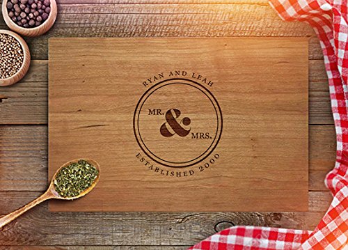 Custom Cutting Board Personalized Wedding Gift for Couple Monogram Anniversary Gift - Mr & Mrs - Christmas Gifts - Kitchen Décor - CB207 (Cherry, 10.5x16) is best for youMaterial Type:Cherry | Size:10.5x16 Our Personalized Cutting Boards are finely crafted and custom engraved with our state of art laser machine. Each wood board is made for special cut wood, sanded, and finished with food safe cutting board oil for excellent protection. The boards are engraved on one side which are meant for display while the other side can be used for cutting. These beautiful customized cutting boards make the perfect gift for a wedding, anniversary or house-warming. All Cutting boards are 3/4' thick. All Designs are meant to samples and interchangeable with another board designs. If you don't see exactly what you like, please contact us and we will be able to design something unique.