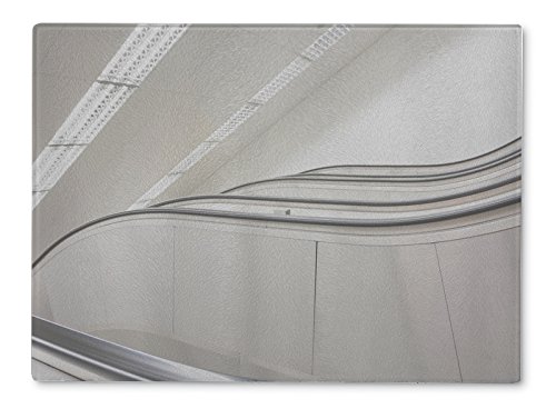 Gear New Cutting Board, Escalator In Station, 11x8 is best for youSize:11.25 inches by 8 inches | Color:Multi This Gear New glass cutting board is designed to beautify not only beautify your kitchen but is a safe and easy to clean cutting surface.The tempered glass is built with a random pattern of tiny undulations which helps the surface work better for cutting. The artwork is actually on the under side of the glass so there is no risk that you will damage the beautiful design.The board also comes with small rubber feet on the corners to help stabilize it on your counter top and keep it from slipping.It is easy to clean with hot water and soap or you can even put it in the dishwasher.Return Policy: Gear New operates with the same 30 day return policy as Amazon, but please note that since each cutting board is made to order, after you order, there is a 20% restocking fee if the item is returned for any reason other than damage. You are also responsible for return shipping.