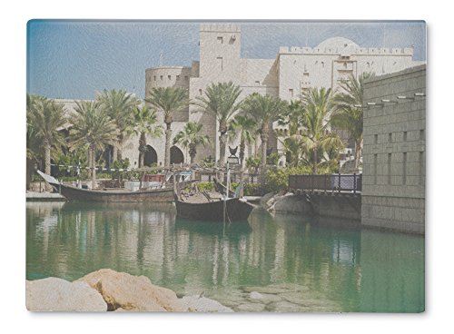 Gear New Cutting Board, Dubaiuae, 15x11 is best for youSize:15.5 inches by 11.25 inches | Color:Multi This Gear New glass cutting board is designed to beautify not only beautify your kitchen but is a safe and easy to clean cutting surface.The tempered glass is built with a random pattern of tiny undulations which helps the surface work better for cutting. The artwork is actually on the under side of the glass so there is no risk that you will damage the beautiful design.The board also comes with small rubber feet on the corners to help stabilize it on your counter top and keep it from slipping.It is easy to clean with hot water and soap or you can even put it in the dishwasher.Return Policy: Gear New operates with the same 30 day return policy as Amazon, but please note that since each cutting board is made to order, after you order, there is a 20% restocking fee if the item is returned for any reason other than damage. You are also responsible for return shipping.