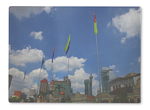 Gear New Cutting Board, Kuala Lumpur, 11x8 is best for youSize:11.25 inches by 8 inches | Color:Multi This Gear New glass cutting board is designed to beautify not only beautify your kitchen but is a safe and easy to clean cutting surface.The tempered glass is built with a random pattern of tiny undulations which helps the surface work better for cutting. The artwork is actually on the under side of the glass so there is no risk that you will damage the beautiful design.The board also comes with small rubber feet on the corners to help stabilize it on your counter top and keep it from slipping.It is easy to clean with hot water and soap or you can even put it in the dishwasher.Return Policy: Gear New operates with the same 30 day return policy as Amazon, but please note that since each cutting board is made to order, after you order, there is a 20% restocking fee if the item is returned for any reason other than damage. You are also responsible for return shipping.