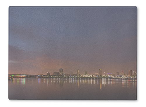 Gear New Cutting Board, Long Beach City Lights, 11x8 is best for youSize:11.25 inches by 8 inches | Color:Multi This Gear New glass cutting board is designed to beautify not only beautify your kitchen but is a safe and easy to clean cutting surface.The tempered glass is built with a random pattern of tiny undulations which helps the surface work better for cutting. The artwork is actually on the under side of the glass so there is no risk that you will damage the beautiful design.The board also comes with small rubber feet on the corners to help stabilize it on your counter top and keep it from slipping.It is easy to clean with hot water and soap or you can even put it in the dishwasher.Return Policy: Gear New operates with the same 30 day return policy as Amazon, but please note that since each cutting board is made to order, after you order, there is a 20% restocking fee if the item is returned for any reason other than damage. You are also responsible for return shipping.