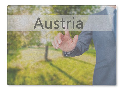Gear New Cutting Board, Austria Businessman Hand Pressing Button On Touch Screen Inter, 11x8 is best for youSize:11.25 inches by 8 inches | Color:Multi This Gear New glass cutting board is designed to beautify not only beautify your kitchen but is a safe and easy to clean cutting surface.The tempered glass is built with a random pattern of tiny undulations which helps the surface work better for cutting. The artwork is actually on the under side of the glass so there is no risk that you will damage the beautiful design.The board also comes with small rubber feet on the corners to help stabilize it on your counter top and keep it from slipping.It is easy to clean with hot water and soap or you can even put it in the dishwasher.Return Policy: Gear New operates with the same 30 day return policy as Amazon, but please note that since each cutting board is made to order, after you order, there is a 20% restocking fee if the item is returned for any reason other than damage. You are also responsible for return shipping.
