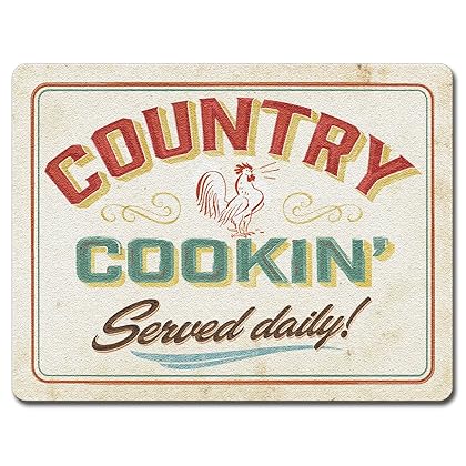 Highland Graphics 'Country Cookin Served Daily' Vintage Style Cutting Board with Rooster Image is best for youFeatures a vintage farmhouse image of a rooster with the message 'Country Cookin Served Daily'!. So pretty for a rustic chic or vintage diner themed kitchen!