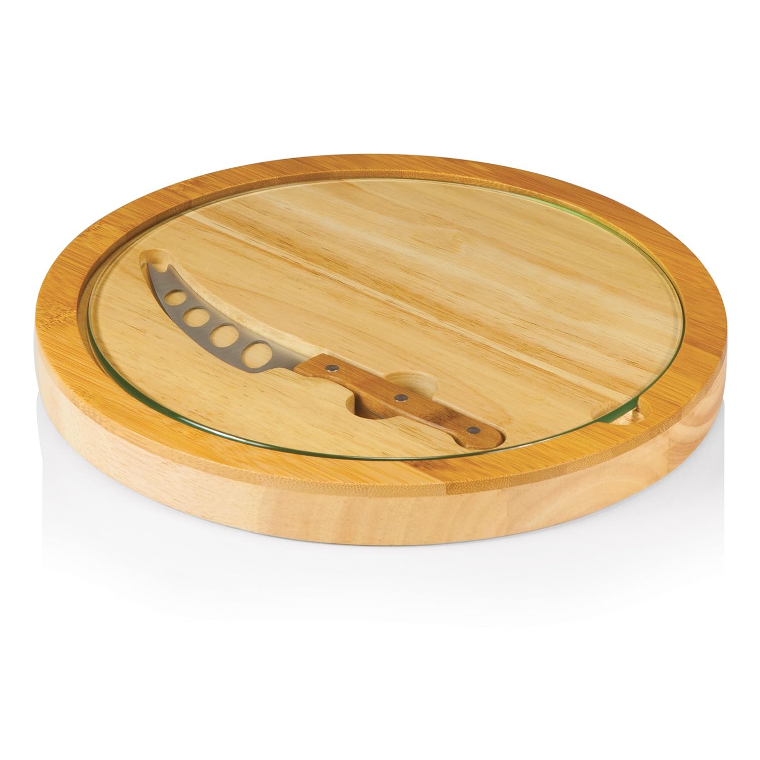 Picnic Time Iris Glass Cutting Board & Knife is best for youThe Kickoff is the party platter and serving tray made especially for avid football fans. Its simple yet distinctive design features inlaid white bamboo to mimic the laces of a football and tapered sides for easy grasping. A recessed groove along the perimeter of the board catches cheese brine, fruit juices or au jus to keep your counter tops clean. The Kickoff will set the right mood for your next football-themed event.
