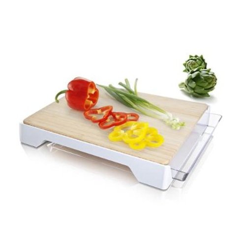 Tomorrow's Kitchen Bamboo Cutting Board with White Tray, 12 by 15-Inch is best for youGenerously sized and well-thought-out, the Vacu Vin Cutting Board features a built-in tray to allow you to quickly and easily separate food from waste. Bamboo, which has natural antibacterial properties is perfect for kitchen settings where food is prepared. Bamboo absorbs little moisture and helps protect delicate knife blades. The cutting board features a convenient tray which slides open to reveal an ideal place to put peels and waste, leaving more room for chopping, mincing and slicing. The non-skid rubber feet ensures the board remains in place while in use. For over 25 years, Vacu Vin has manufactured and distributed patented, innovative kitchen, barware and housewares products. With a focus of bringing quality, functional and fun products to consumers at reasonable prices, Vacu Vin products have been awarded over 20 International Design and Trade Awards and are sold in over 80 countries. Vacu Vin believes innovative ideas set tomorrow's standards and it is with this philosophy that Vacu Vin will continue to bring unique, quality products to your home for years to come.