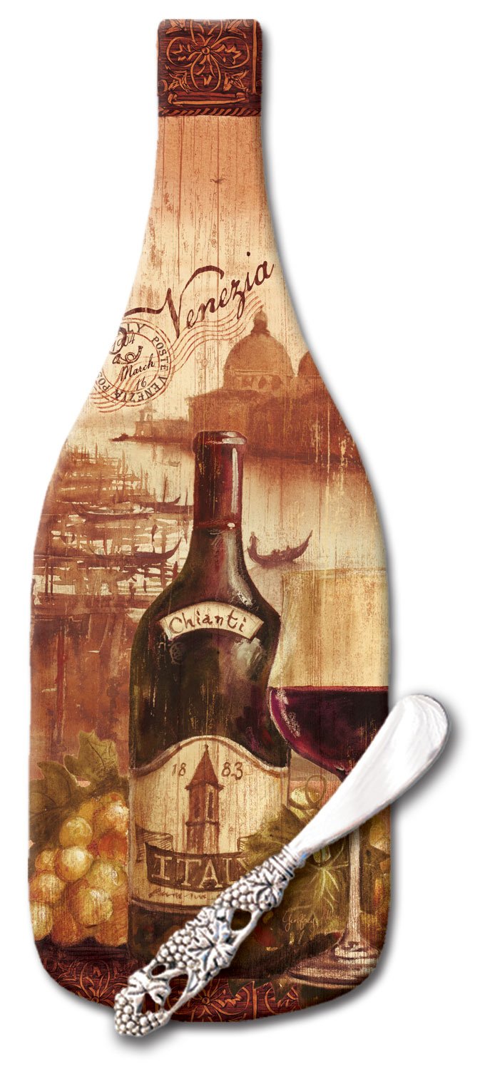 CounterArt Wine with a View Wine Bottle Shaped Glass Cheese Board with Spreader Knife, 12-1/2" best Cutting Boards