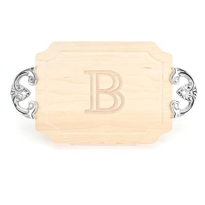 BigWood Boards 300-CL-B Cutting Board with Handles, Monogrammed Wedding Gift Cutting Board, Small Cheese Board, Maple Wood Serving Tray, "B" is best for youStyle Name:B Product Description The BigWood Boards Small Monogrammed Cutting Board with Handles is a solid Maple wood cutting board in a classic design. It is a versatile and personalized cutting board that is great not only for food preparation and serving but also great displayed as kitchen décor. Our small monogrammed board is 9-inches by 12-inches and 3/4-inch in thickness making it the perfect size and weight for a kitchen cutting board used for cutting and serving small portions. It makes an exceptional bar or cheese board for entertaining. The cast aluminum classic handles customize the look for your cutting board. The non-slip rubber feet ensure that the wood board stays secure and the perimeter juice groove catches liquid to keep the counter or table clean. These features add to the functionality of the board. This cutting board makes a lovely personalized gift for a wedding, birthday, or any other special occasion. The beautiful carved monogram adds an element of personalization and makes this a special monogrammed wedding gift or monogrammed gift for another occasion. From the Manufacturer BigWood Boards Cutting Boards are “The Original Monogrammed Cutting Boards.” They are proudly made in America and from wood that is responsibly sourced from suppliers throughout the U.S. We pride ourselves on the natural grain and beauty of the woods we use. This beautiful monogrammed board is crafted in Hard Maple, which is an exceptional wood for even the most discriminating chef. All of our boards are hand sanded for a smooth finish and built to withstand every day use for years to come. Our boards make the perfect gift for any occasion. Caring for this cutting board is easy and low maintenance. Simply use soap and warm water to clean. Use a food safe oil such as natural linseed oil once a month to prolong the life and beauty of the board.