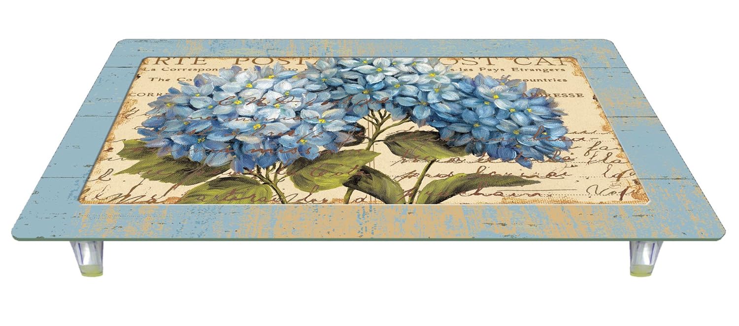 CounterArt Blue Hydrangeas Tempered Glass Instant Counter is best for youThis Counter Art Instant Counter features a raised working surface with permanently attached silicone-capped feet for stability, allowing for placement over stovetop burners and sink openings to create additional prep space in your kitchen. Made of durable tempered glass with an attractive design, the Instant Counter offers precious additional functional work space while adding a beautiful design element to your kitchen. This versatile piece may also be used as a cooling surface for hot cookware or as a serving tray on the buffet or dinner table. Great for entertaining at home, boats, or RVs. Measures 20-1/2 by 11-3/4 by 1-3/4.