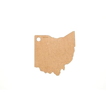 Epicurean State of Ohio Cutting and Serving Board, 11 by 10", Natural is best for youEpicurean is a way of life-a reflection of our personal values and those of our customers. Every Epicurean cutting board and kitchen accessory is made with naturally renewable or recycled materials in an environmentally responsible way. Our products are well-designed, practical, casual tools that feel at home in any kitchen. Today, Epicurean cutting boards, kitchen tools and utensils are at the center of everyday life for both the casual cooks and seasoned gourmets. We pride ourselves on original designs that are simple, functional and beyond trend. Quality materials are carefully selected to be both durable and eco-friendly creating long-lasting products that balance performance with respect for the environment. Every Epicurean product is made in the U.S.A., creating good jobs and strengthening the economy. Our cutting boards get their natural look and texture from wood fiber composite, made with organic, eco-friendly ingredients. This state of Ohio cutting and serving board brings fun to your kitchen prep or your party. This durable surface is nonporous, knife-friendly and dishwasher safe for sanitary preparation and easy cleanup. It is also NSF certified, so you know our cutting surfaces meet rigid standards for quality and safety. This natural colored board features a cutout in the shape of Ohio and measures 11 by 10-inches, can be used on both sides and is dishwasher safe.
