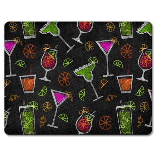 Happy Hour - Small Glass Cutting Board is best for youThis eye catching Tempered and coated Glass Cutting Board is not only beautiful, but also very useful and practical for home chef's and restaurant owner's alike. This functional, sanitary, and heat resistant glass cutting surface is ideal for slicing, dicing, and mincing or use as a protective work space for your saucepans and hot dishes in the kitchen. The cutting board Includes self-adhesive rubber feet and when placed against the wall in a standing position, these cutting boards are ideal for decorative purposes as well! Our professional coat will ensure that it will always remain great to look at whilst making a terrific conversation piece in the kitchen.