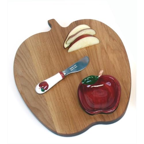 Out of the Woods of Oregon Apple Shaped Board with Red Apple Dipping Bowl and Spreader best Cutting Boards