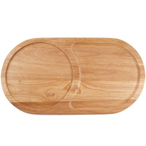 Oval Wooden Snack Serving And Cutting Board is best for youCut, serve, and enjoy delicious snack foods all on one easy to use and attractively designed piece with this oval snack board. Constructed out of fine wood, the tray has two segments, one circular, and the other a wide crescent. You can utilize these segments in a variety of ways, such as cutting in one, serving on the other, or separating cheeses from crackers. Due to its light weight, attractive styling, and versatility, the board also makes a great hostess gift.17-1/2' L x 9-1/2' W x 3/4' H