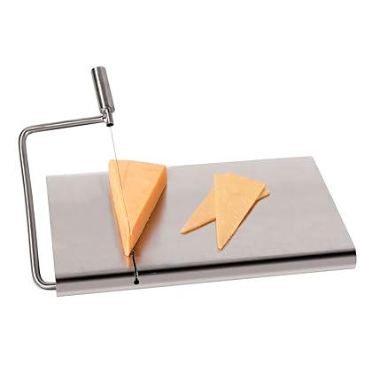 Oggi 7540 Stainless Steel Cheese Cutting Board with Wire is best for youA cheese board with a built-in slicer. Whether it's for snacks at home or serving guests at a wine party, you'll be well equipped to serve everyone's favorite cheese. Attractive and easy to use; contemporary and convenient design. Stainless steel finish.