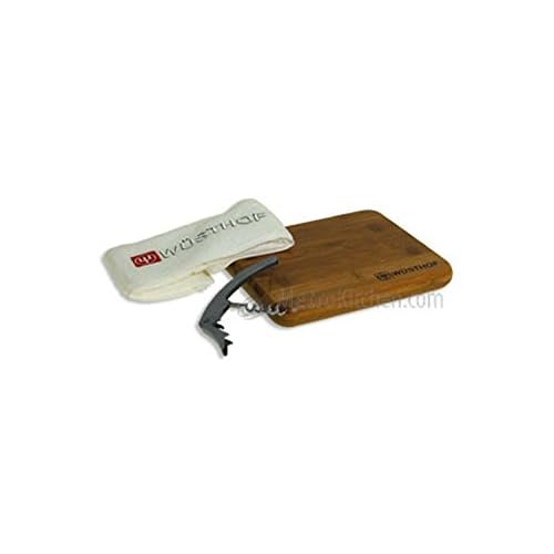Wusthof 3-Piece Bar Tool and Cutting Board Set is best for youProduct Description The three useful Wusthof accessories are a complement to any knife set. This set includes a bamboo bar size cutting board 8'x5.5'x1 , a knife polishing towel and a corkscrew. Amazon.com A great gift for the bottle-toting traveler or for stocking an RV, camping kitchen, or vacation cabin, this bar set offers three basics: a folding metal waiter's corkscrew, with foil-cutting knife; an 8-by-5-1/2-by-1-inch cutting board made of very hard bamboo, perfect for slicing lemon and lime garnishes (or for doubling as a trivet); and a cotton towel for polishing wine glasses or wiping clean a knife blade. Further enhance the gift with a German-made paring knife for those lemons, from Wüsthof , one of the world's premier cutlery companies. --Ann Bieri What's in the Box Bamboo cutting board; corkscrew; cotton towel. 3 items total.