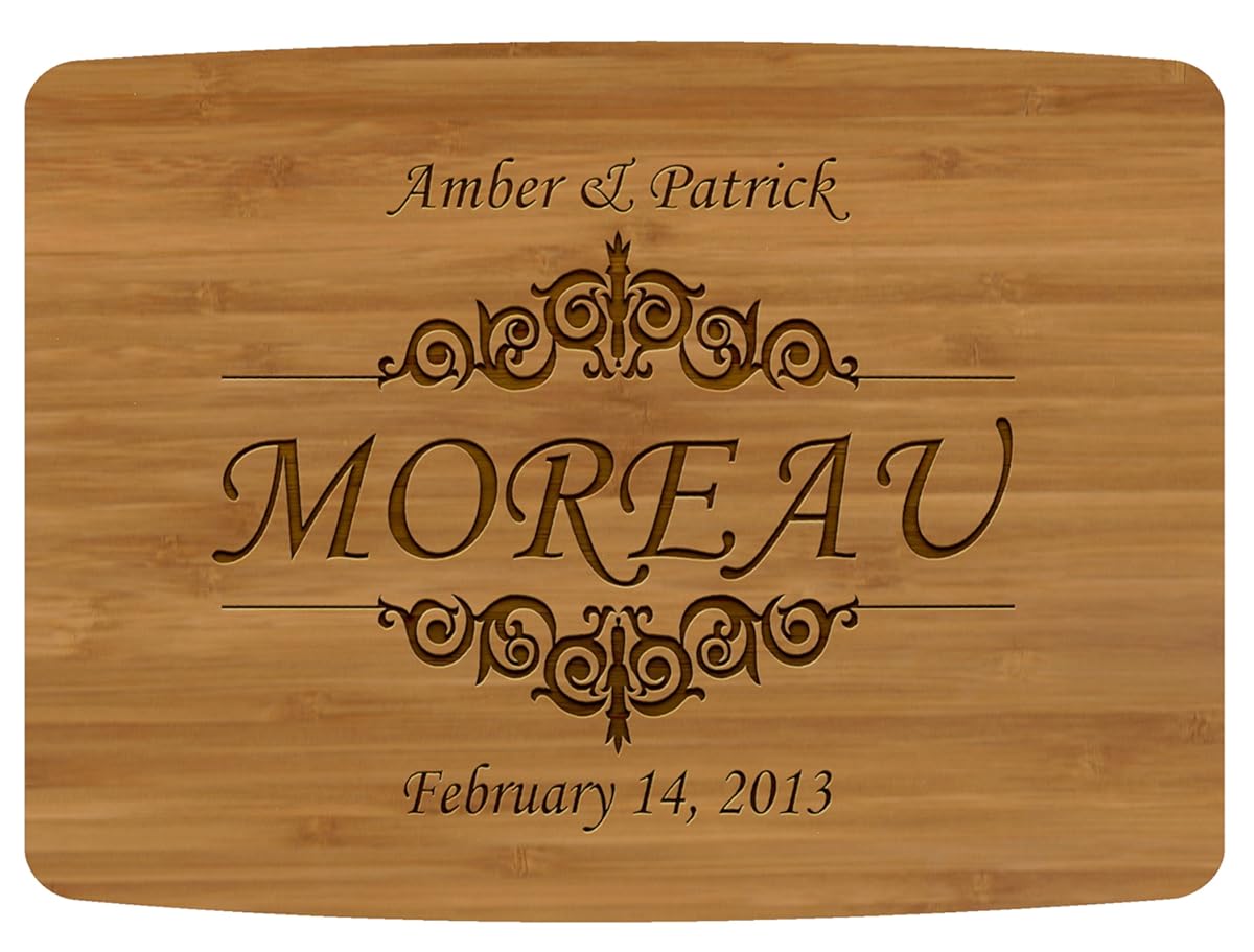 Custom Natural Bamboo Cutting Board Wedding Gift, Personalized with your Name & Wedding Date - Moreau Design best Cutting Boards