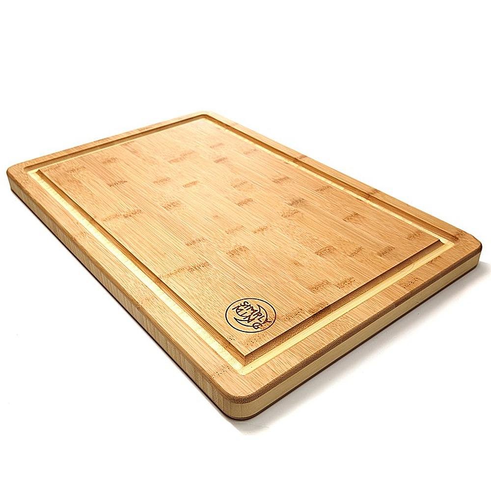 - VERSATILE & NO MESS - Large size and reversible makes for a great chopping board, cheese board, or epicurean cutting board. Large juice and drip groove keeps liquids on the board and not all over your counter. Flip the board to the smooth side to use as a bread or pastry board.